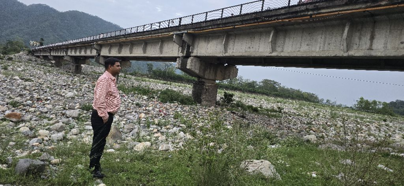 "The 270 m bridge raipur thano inspected. The total discharge of water in flowing through through last span. Due to that tendency of water is healing to abutment is increased. The chanalization of water through central span is necessary for safety of abutment and approach road is required. Sufficient dredging of river is required for centralized the flow of water and avoid the direct hitting to abutment and approach. The jacketing of central pier is also damaged. Immediate repair of this pier required "
