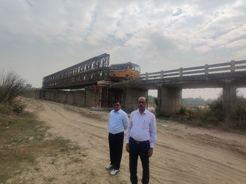 "There are 60 No. box culverts in this bridge. Serial No. 28 to 32 box culverts were damaged during last year's rainy season. 45 m span Bailey bridge has been placed in place of the damaged portion of the box culverts. This bridge is open for light vehicles."