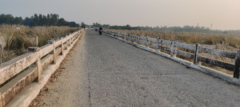 "यह 304m विस्तार का आरसीसी बॉक्स टाइप सेतु है डेक की सतह में कुछ माइनर क्रैक है कुछ poth hole भी है जिनकी मरम्मत betumineus मैटेरियल से कराई गई है एक दो poth hole ki मरम्मत की आवश्यकता है abutment तथा pier ke आस पास घास इत्यादि दिखाई पड़ रहा है सेतु याता यात हेतु सुरक्षित है"