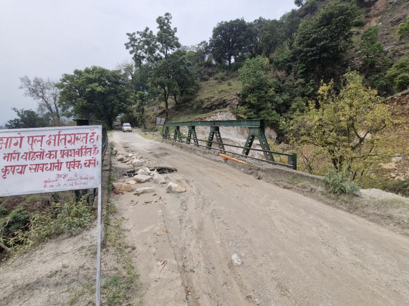 "Deck slab damege of bridge . Temprary Diversion constructed by PMGSY Pithoragrh. Diversion washout due to heavy rain last night. PMGSY Pithoragrh repair Diversion today for traffic. The Road under construction for upgradation by Irrgation Div.PMGSY Pithoragrh. "