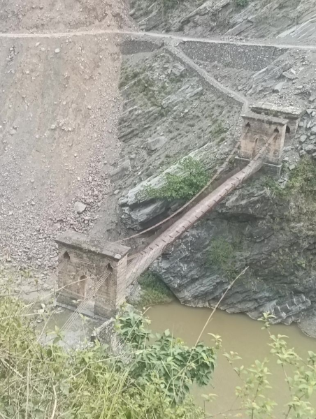 "झूला पुल सही अवस्था में है व यातायात हेतु सुलभ है , पुल पर पीसी से wearing coat की आवश्यकता है , पुल की रेलिंग की जाली क्षतिग्रस्त हो गई है जिसको रिपेयर करने की आवश्यकता है।"