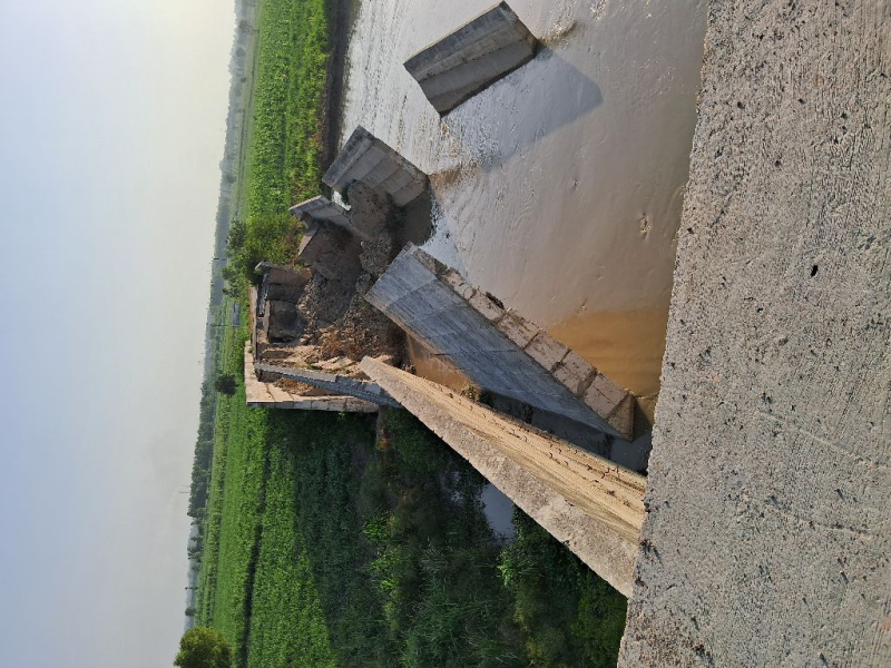 "Bridge right side approch including wing wall etc damage and washout due to flood 13 july 2023 and traffics is completely closed.. now restoration and protection design done by iit Roorkee and as per Design dpr send for approval. Bridge is unsafe for all traffics "