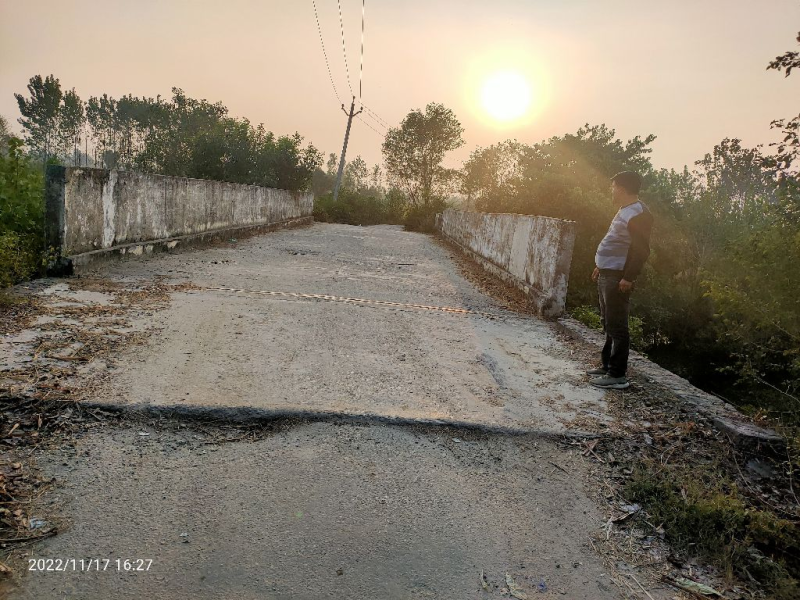 on Chainage 0.800 of Road from Purkaji Laksar road to Prahladpur Bharuwala Mirzapur Sadat Bijopura motor road : .