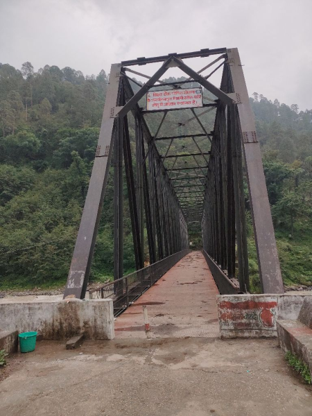 Steel truss Pedestrian bridge over Bhagirthi river at Naluna