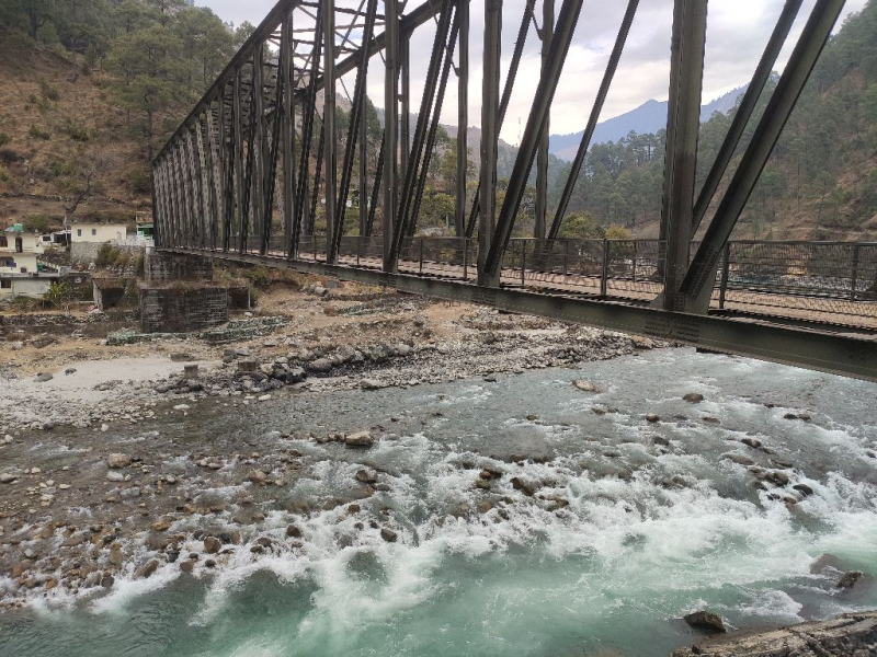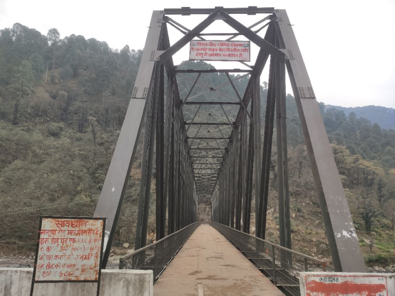 Steel truss Pedestrian bridge over Bhagirthi river at Naluna