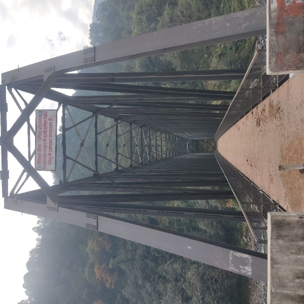 Steel truss Pedestrian bridge over Bhagirthi river at Naluna