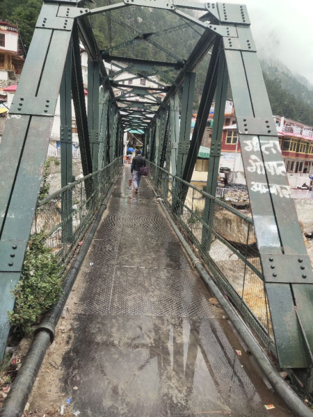 Steel truss Pedestrian bridge over Bhagirthi river at Gangotri