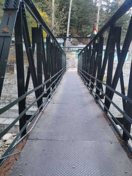 Steel truss Pedestrian bridge over Kedar Ganga river Gangotri