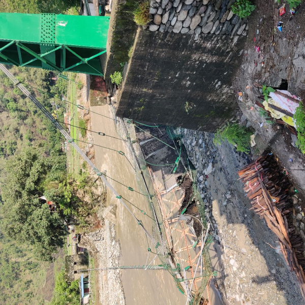 Suspension bridle bridge at belkhet over queraala river