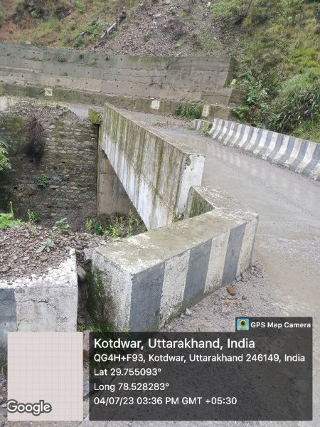 on Chainage 14.250 of Fathehpur Deriyakhal Lansdowne motor road.