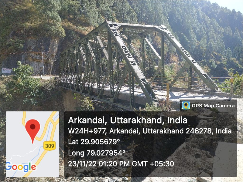 on Chainage 140.870 of starting from its junction with NH -74 near kashipur connecting Ramnager Dhumakot Thalisain Tripalisain Pabo and Terminating at NH 119 near Bubakhal National Highway