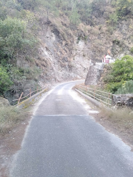 on Chainage 73.850 of Thalisain Bhungidhar Deghat Jainal Manila Dotiyal Marchula state highway