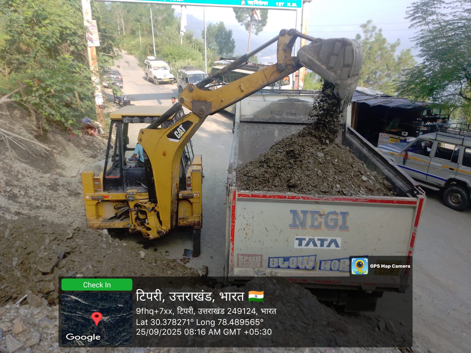 Jakhnidhar HQ jcb moved to site with tipper |