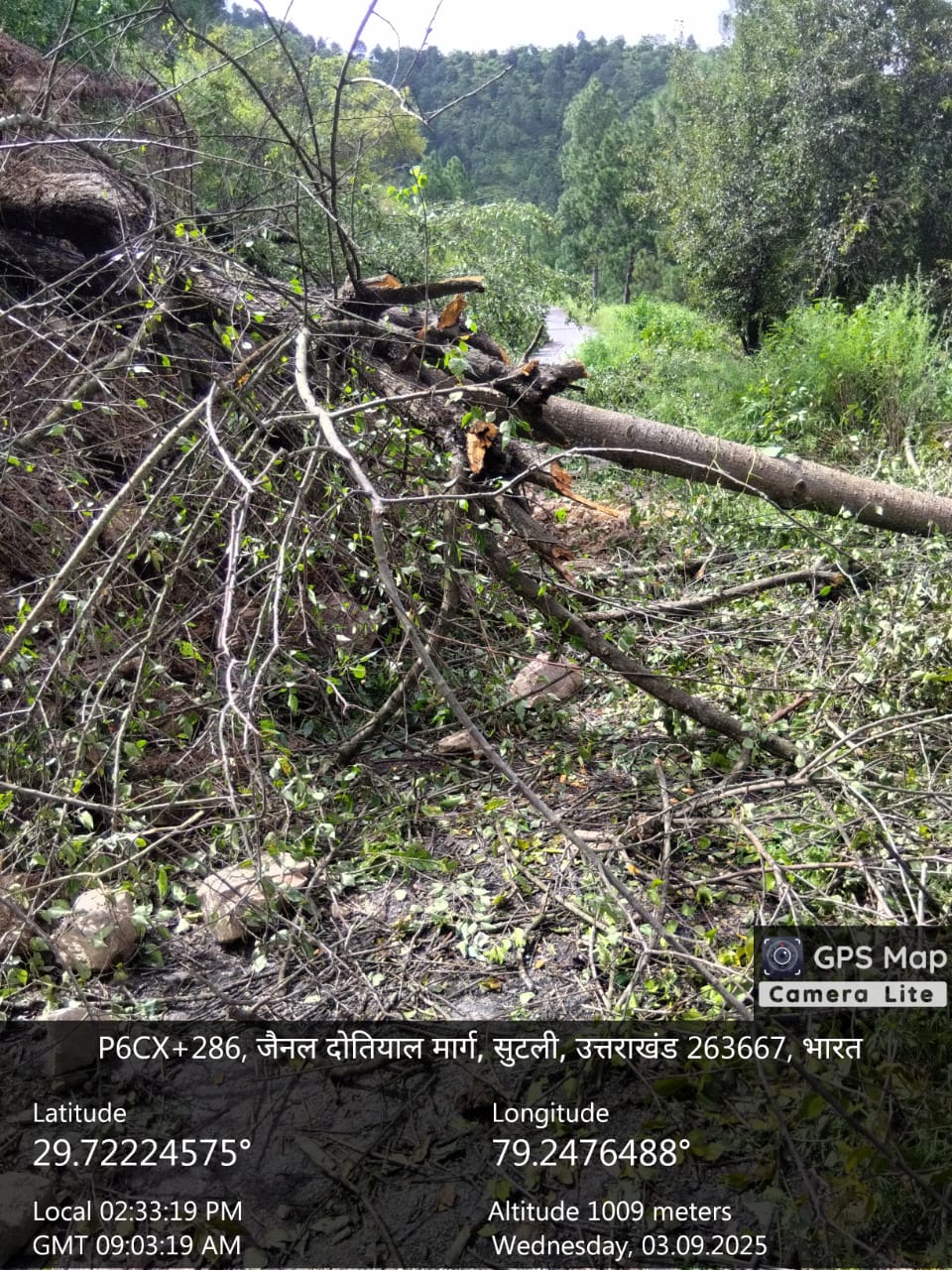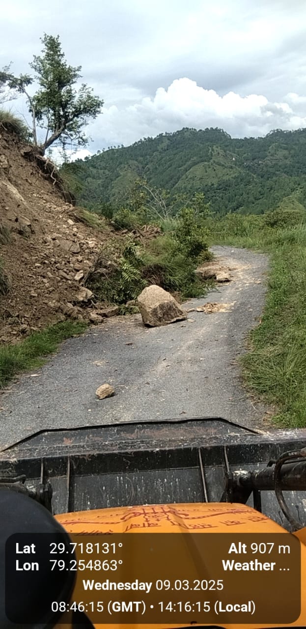 मार्ग पर हल्का मलवा आया है एवं नाली बंद हो गई है जिसे जेसीबी मशीन द्वारा सही किया जा रहा है मार्ग यातायात हेतु खुला है |