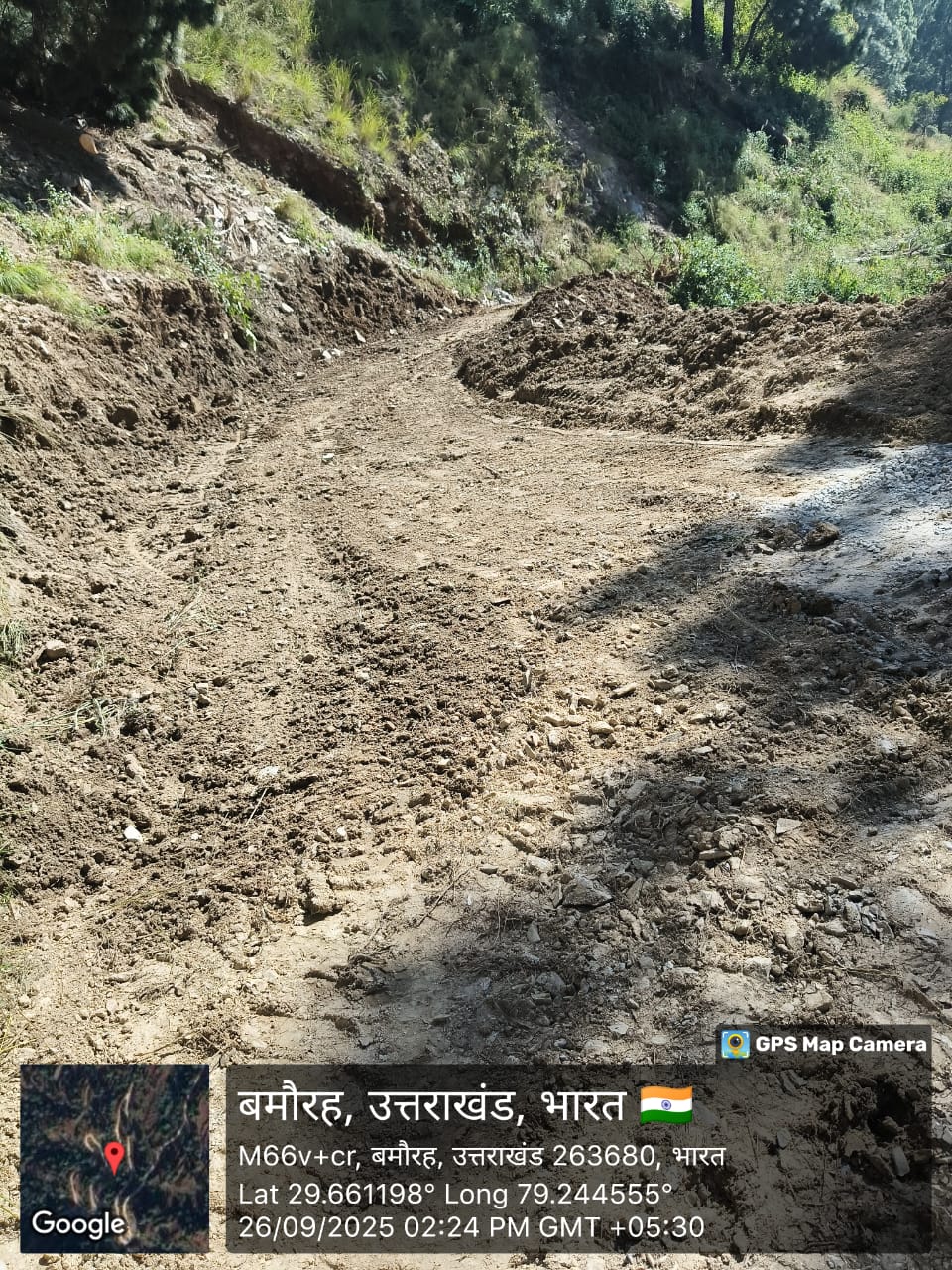 मोटर मार्ग यातायात हेतु खुला है, मार्ग में गडडे व कीचड होने के कारण सतह सुधार का कार्य किया जा रहा है। |