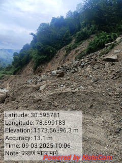 अतिवृष्टि के कारण मोटर मार्ग कि0मी0 7 में वाॅसआउट हो गया है।उक्त स्थान पर पहाड से पानी के साथ बोल्डर आने के कारण मशीन कार्य करने में असमर्थ है।