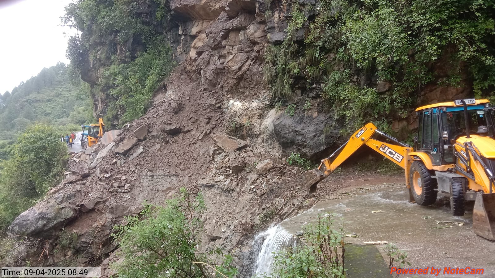 10 mtr road washout, heavy boulder occurs from hill side. Two jcb deployed, |