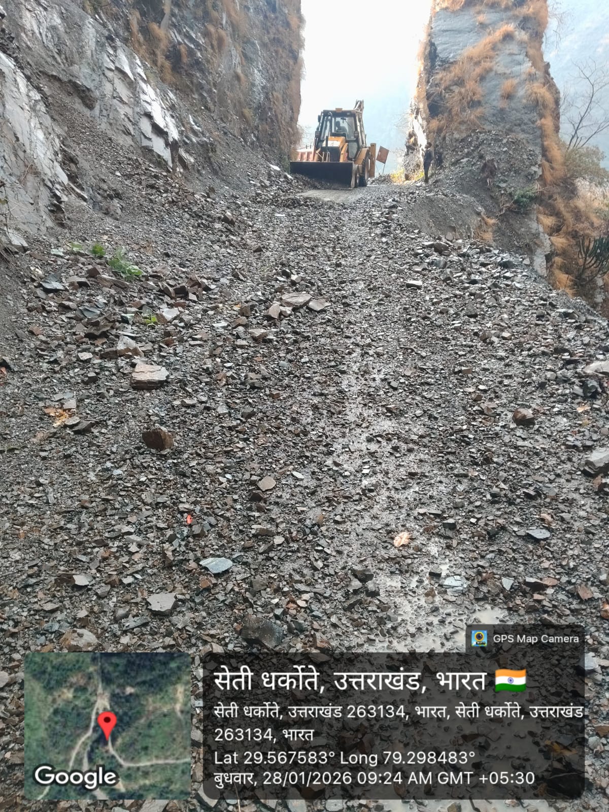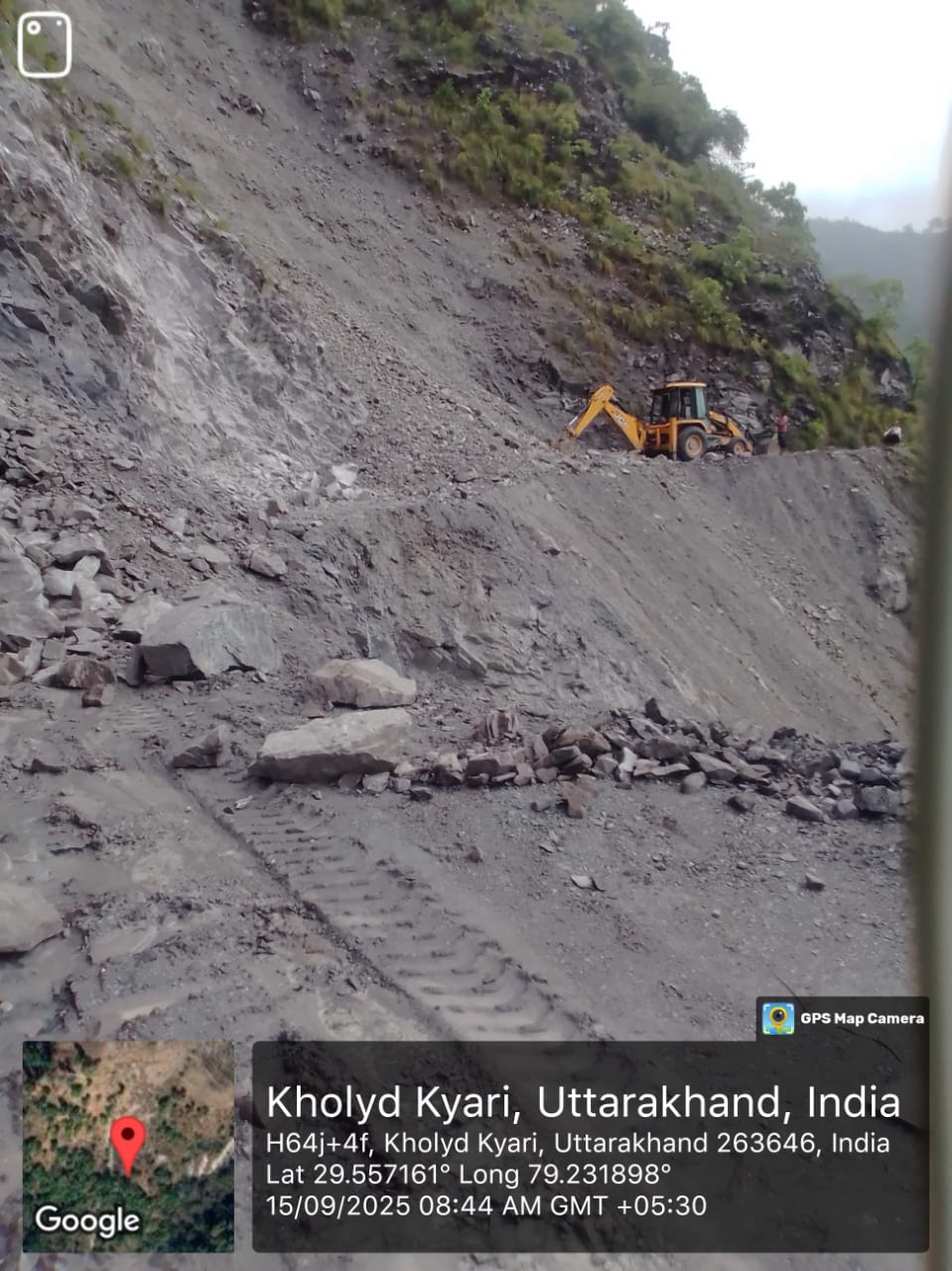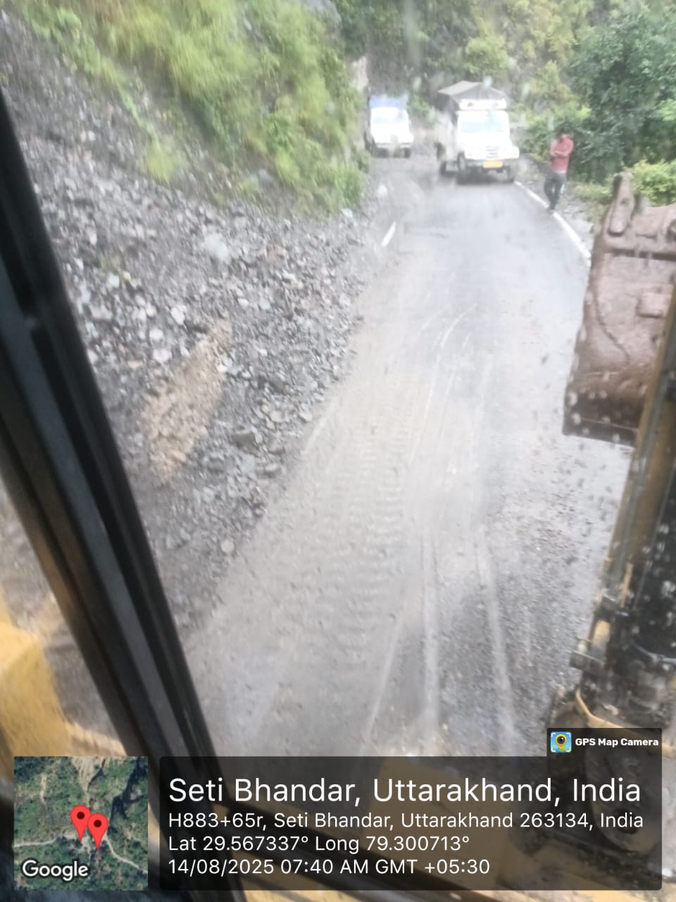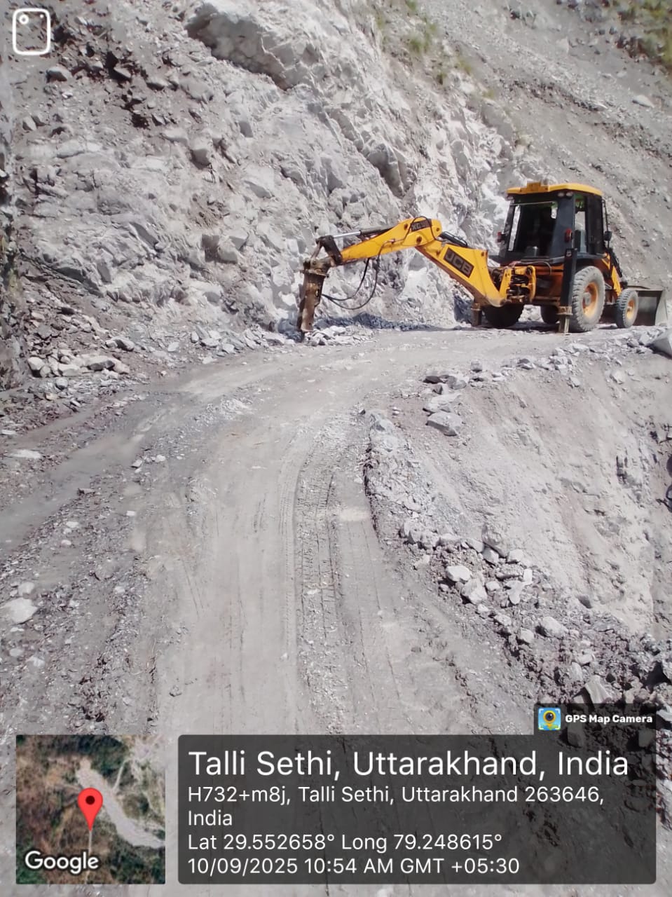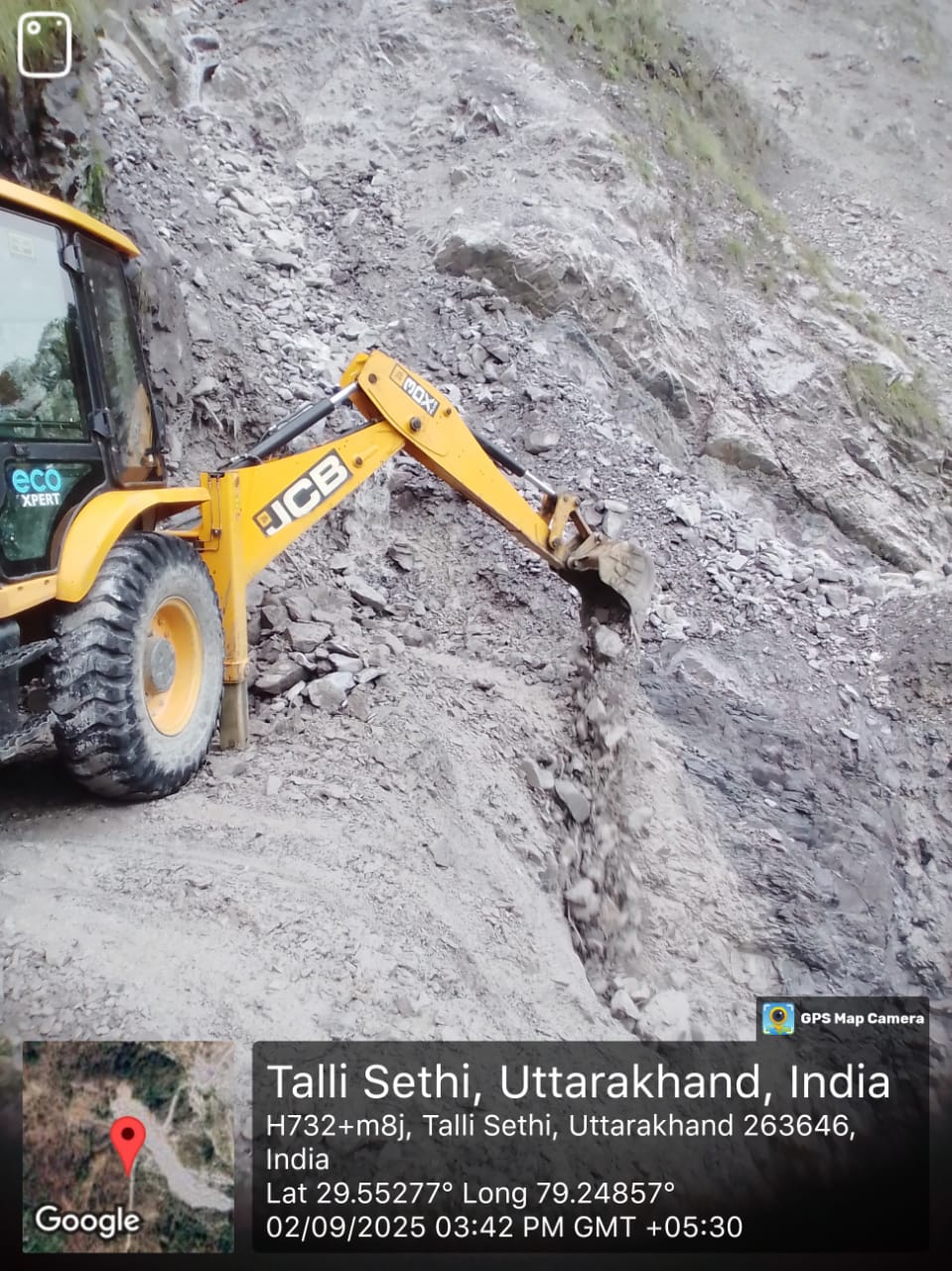मार्ग किमी 19 में washout हो गई थी जो वर्तमान में केवल हल्के वाहनों हेतु खुला हैं अतिरिक्त पहाड़ कटान एवं मलवा सफाई हेतु दो जेसीबी मशीनें (01 with breaker) कार्यरत हैं।
