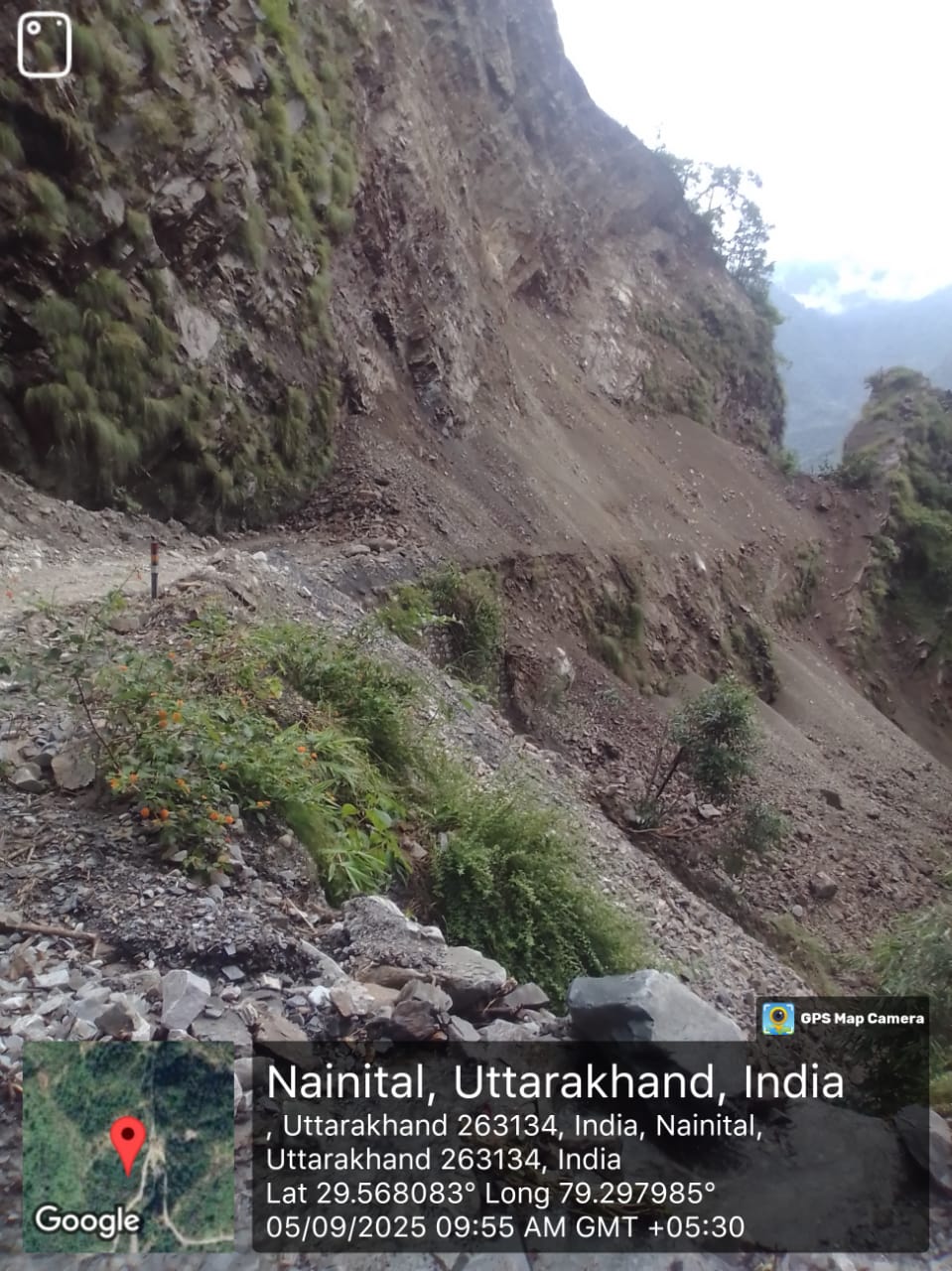 गर्जिया(घुघुतीधार)-बेतालघाट-खैरना-ओड़ाख़ान-भटेलिया-मुक्तेश्वर राज्य मार्ग संख्या -62 के किमी 19(18.200-18.400 )के मध्य लगभग 50 मीटर मार्ग washout हो गई है, मार्ग के स्थायी समाधान हेतु उक्त स्थल पर दीवार का निर्माण कर चौड़ाई बढ़ाया जाना है, अस्थाई समाधान हेतु Hill side में Back cutting की आवश्यकता है ,Hard rock होने के कारण Back cutting का कार्य JCB द्वारा किया जाना संभव नहीं हो पा रहा है,Cutting हेतु ब्रेकर की आवश्यकता है जिसकी व्यवस्था की जा रही है। मार्ग आज यातायात हेतु खोला जाना संभव नहीं हो पा रहा है । उक्त मार्ग का वैकल्पिक मार्ग बेतालघाट से भतरौजखान होते हुए रानीखेत मार्ग है ।