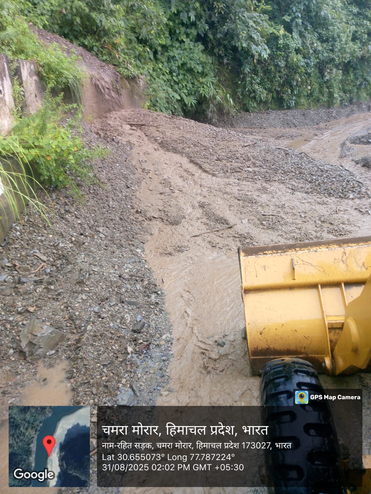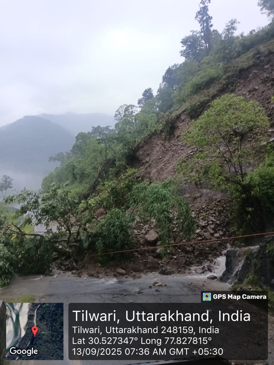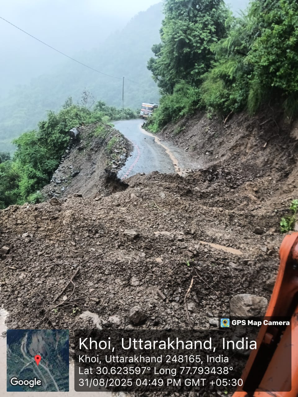 भारी वाहनों के लिए मार्ग अवरूद्ध है। स्लिप सफाई का कार्य प्रगति पर है।