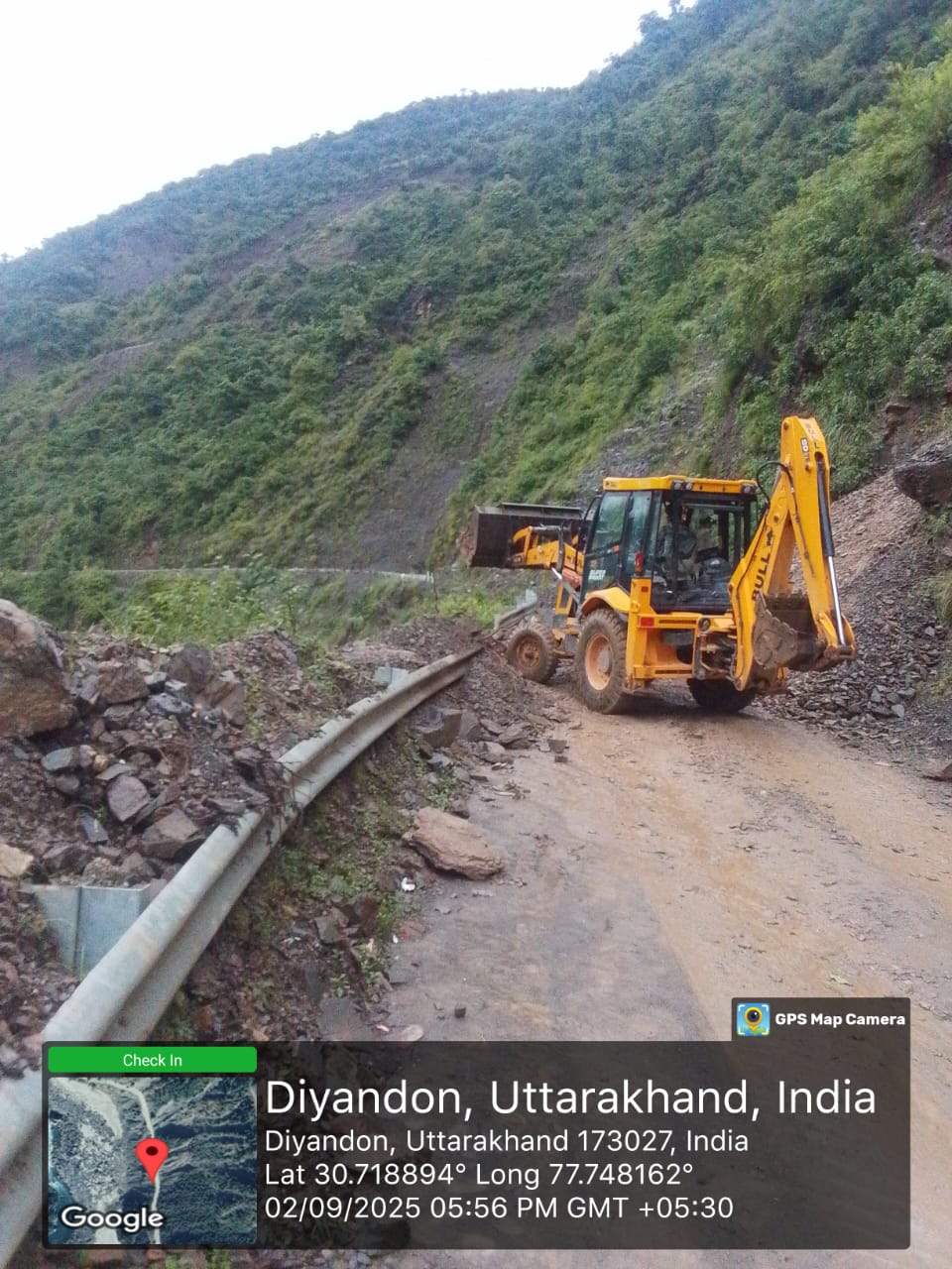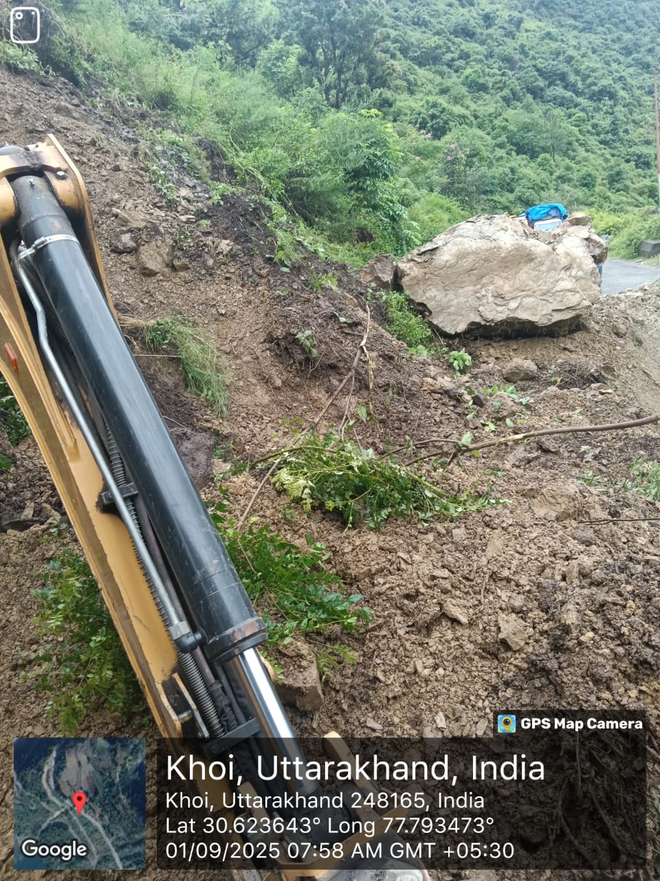 मार्ग के किमी0 7 में पहाड से लगातार मलवा आ रहा है जिस कारण यातायात बार-बार अवरूद्ध हो रहा है। उक्त स्थल पर प्राईवेट जे.सी.बी. मशीन द्वारा कार्य किया जा रहा है।