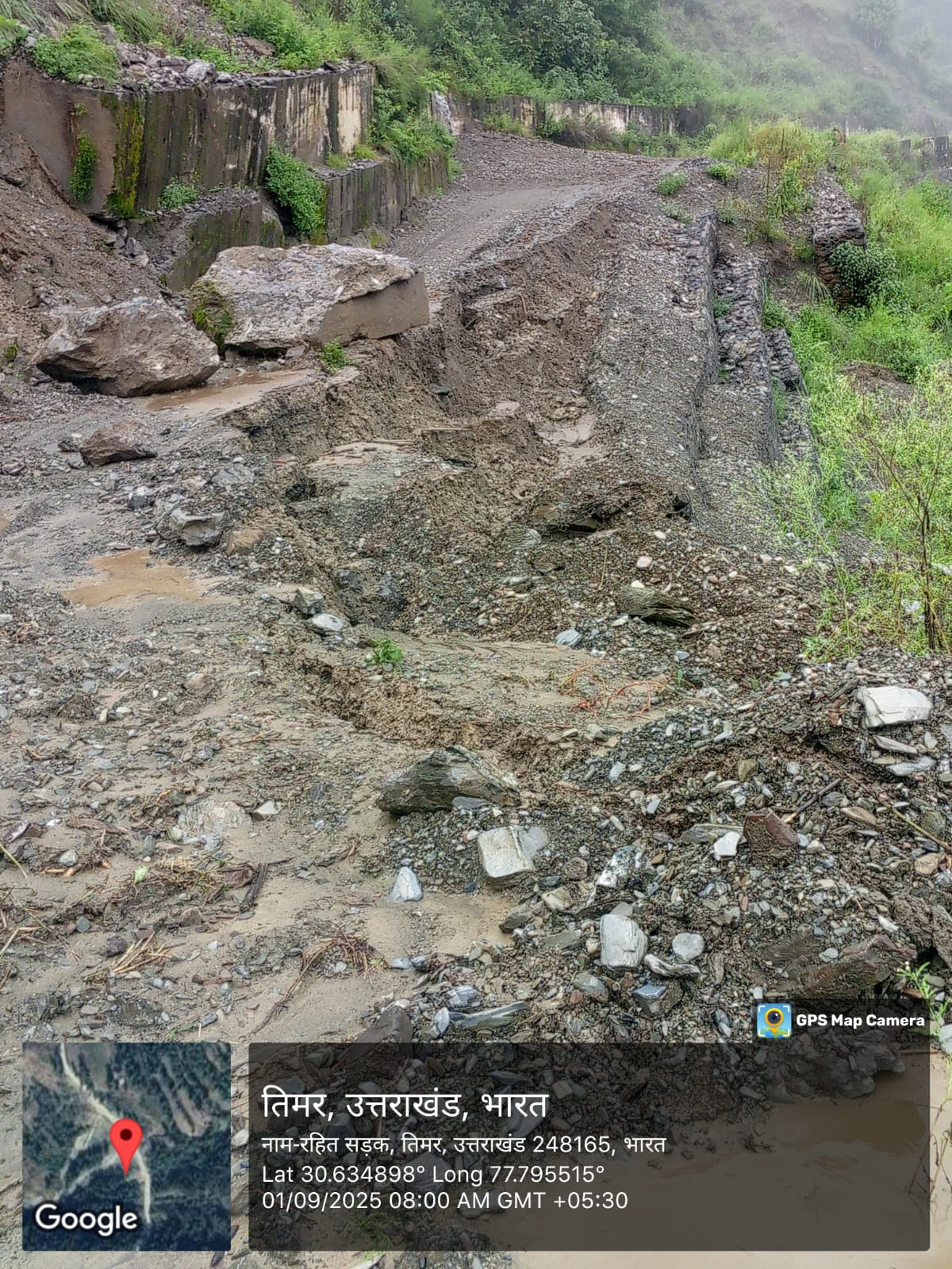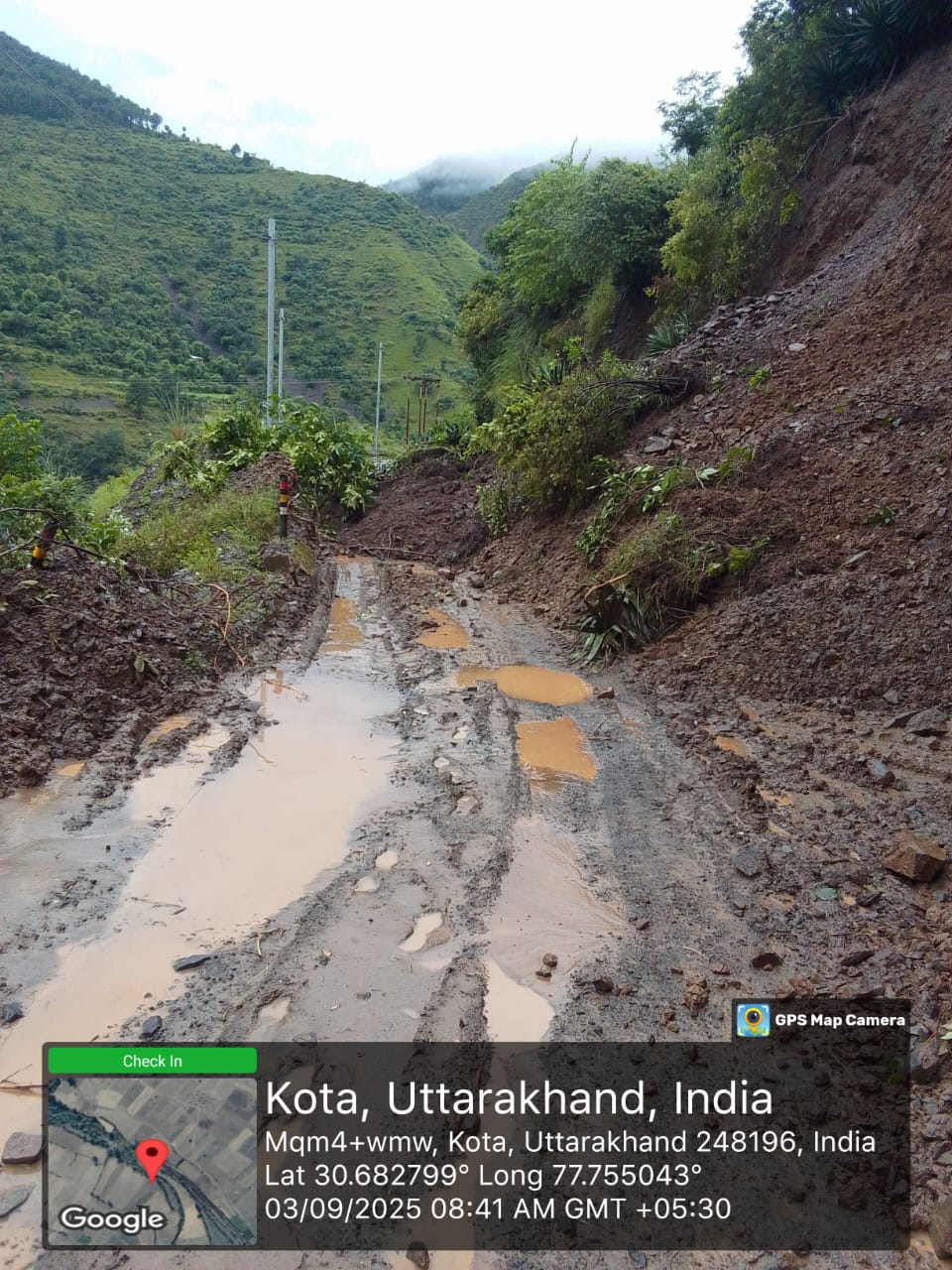 मार्ग के किमी0 3 मेें दीवार क्षतिग्रस्त एवं रोड धंसाव होने के कारण मार्ग को पूर्व दशा में लाने हेतु लगभग 9.45 लाख की आवश्यकता होगी।