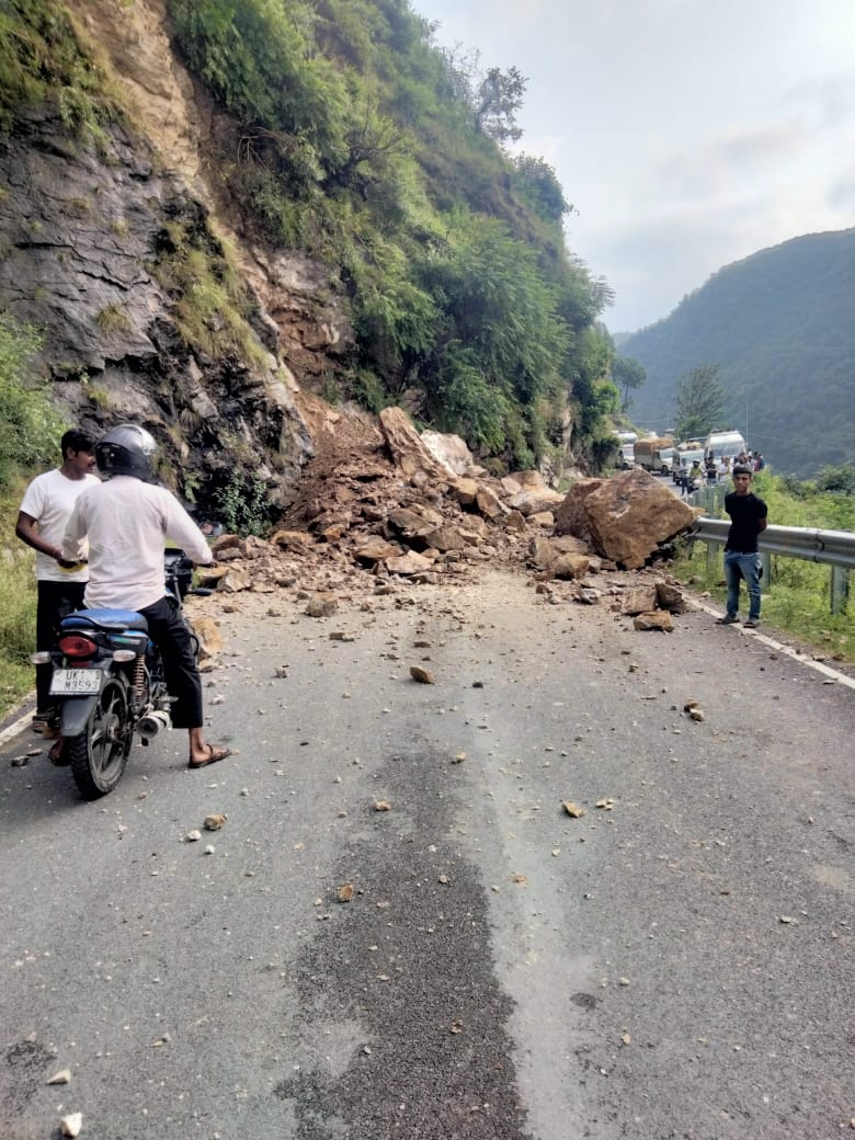 मार्ग यातायात हेतु अवरूद्ध है। लगातार हो रही तेज बारिश के कारण पहाड से लगातार पत्थर आ रहा है। जिस कारण बारिश कम होने के पश्चात ही मार्ग खोलने का कार्य किया जाना सम्भव हो पाऐगा।