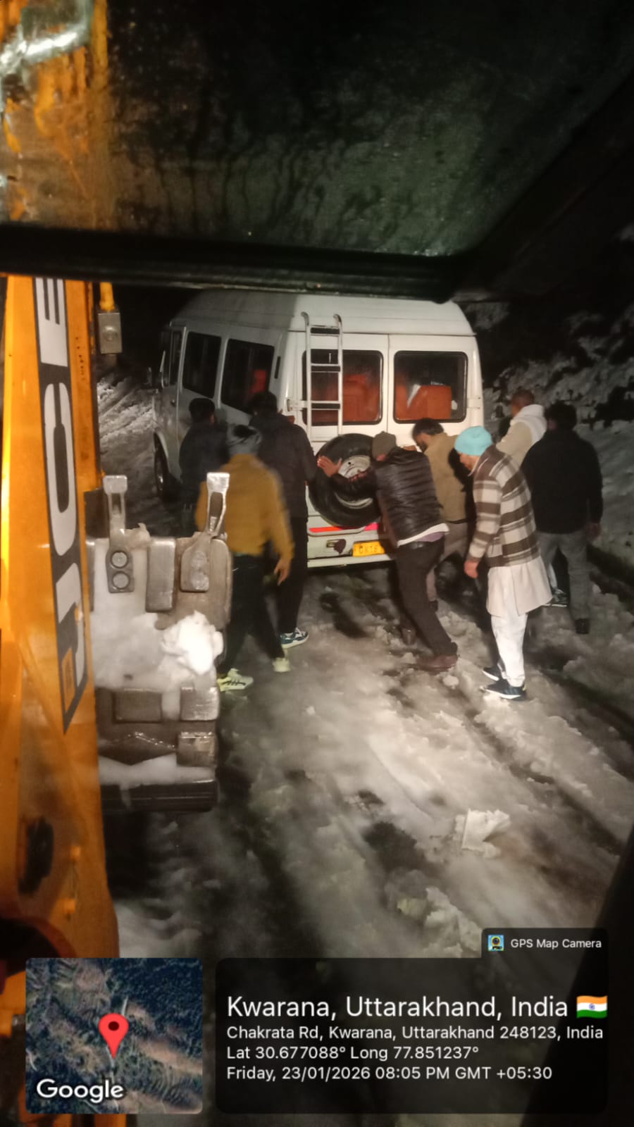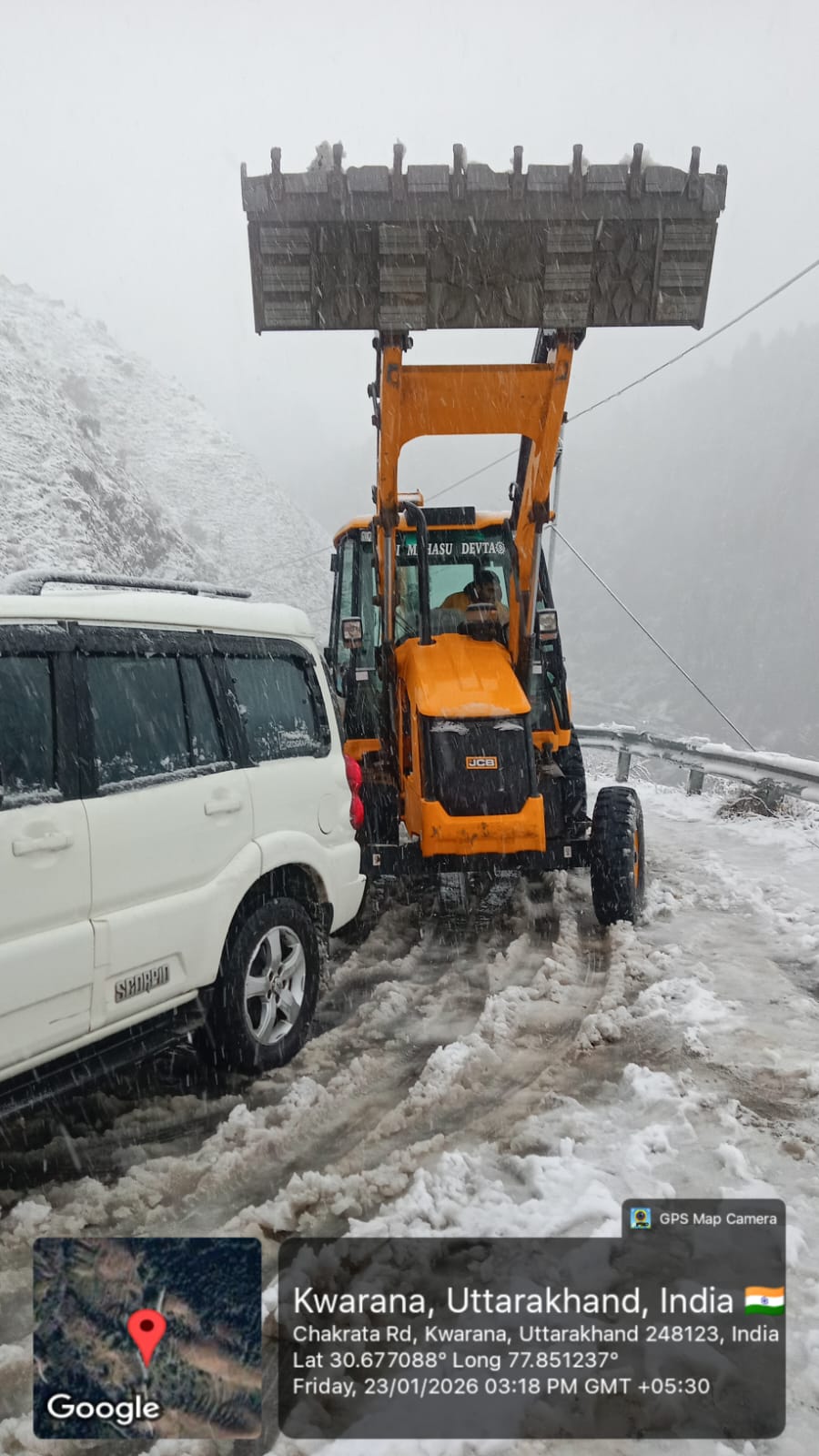 मार्ग पर बर्फबारी के कारण यातायात हेतु अवरूद्ध है। बर्फ हटाने का कार्य प्रगति पर है।