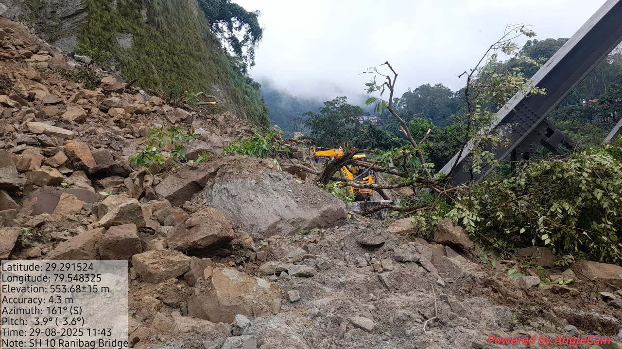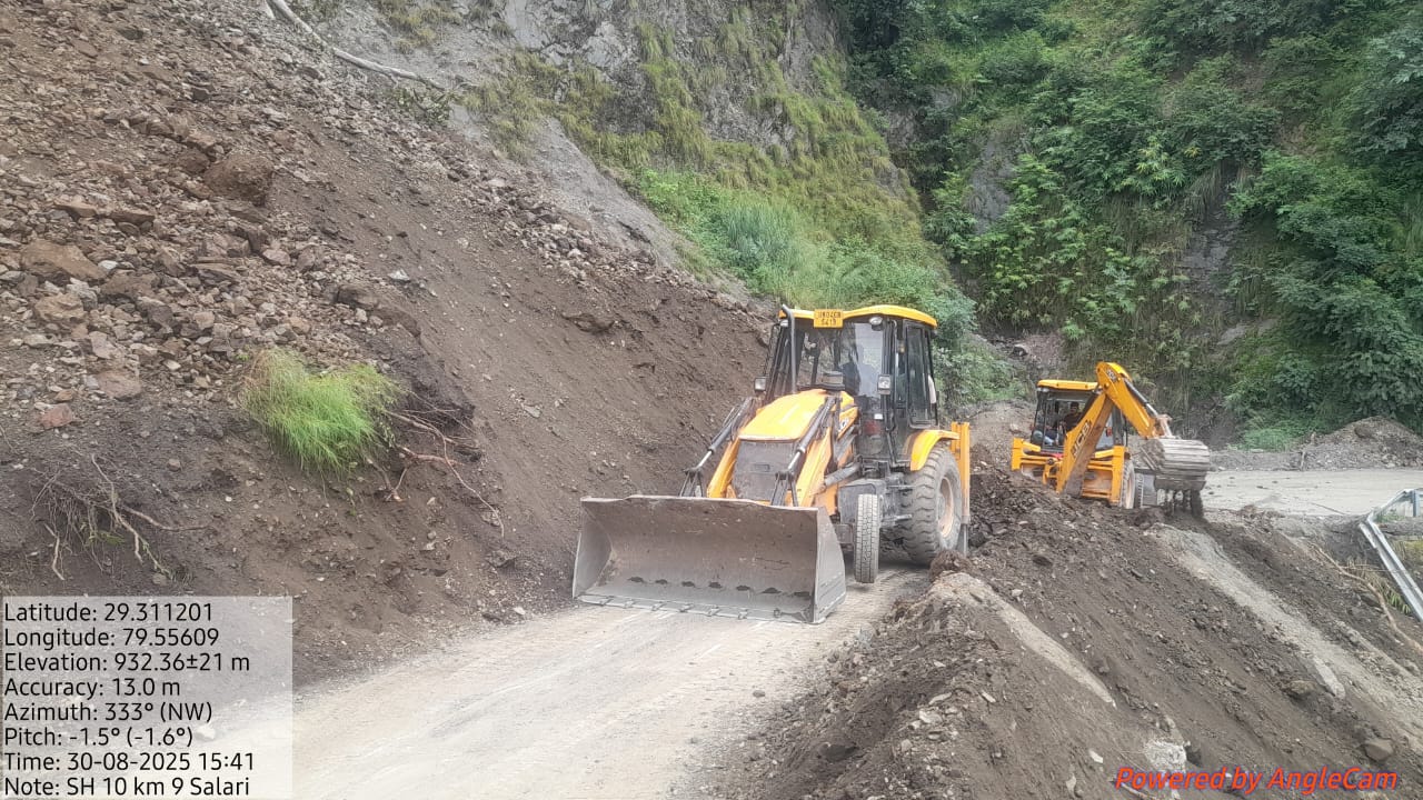दो पोकलैंड मशीन और एक जे0सी0बी0 मशीन कार्य कर रही है। सड़क छोटे वाहनो हेतु खुली है। |
