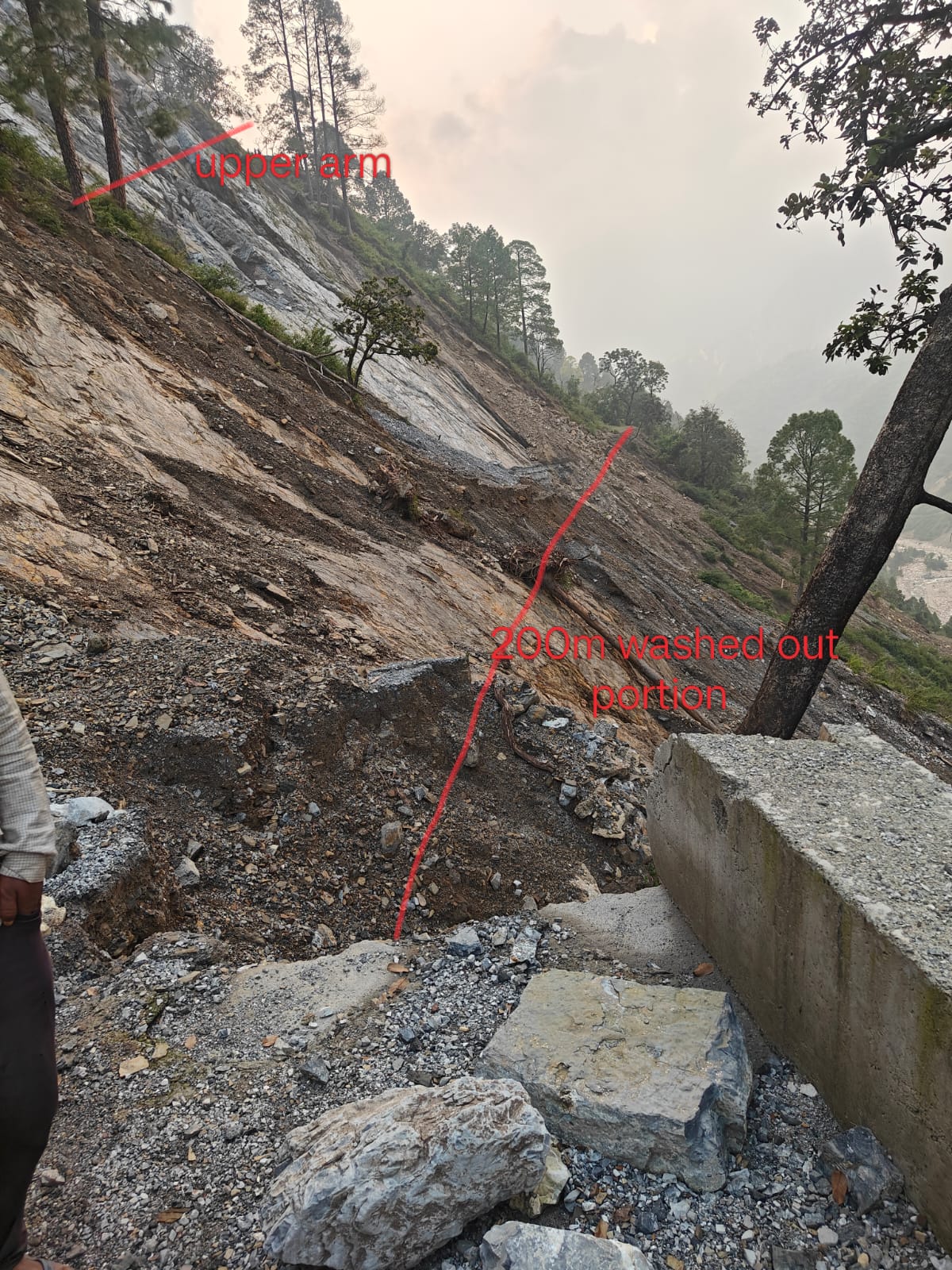 मार्ग के किमी0 12, 13 में स्लिप आने तथा 13/33 से 15/28 के मध्य मार्ग जगह-2 पर वाश आउट हो गया है। (13/33-13/40, 14/05-14/09, 14/12-14/22, 14/28-14/36, 15/10-15/28)