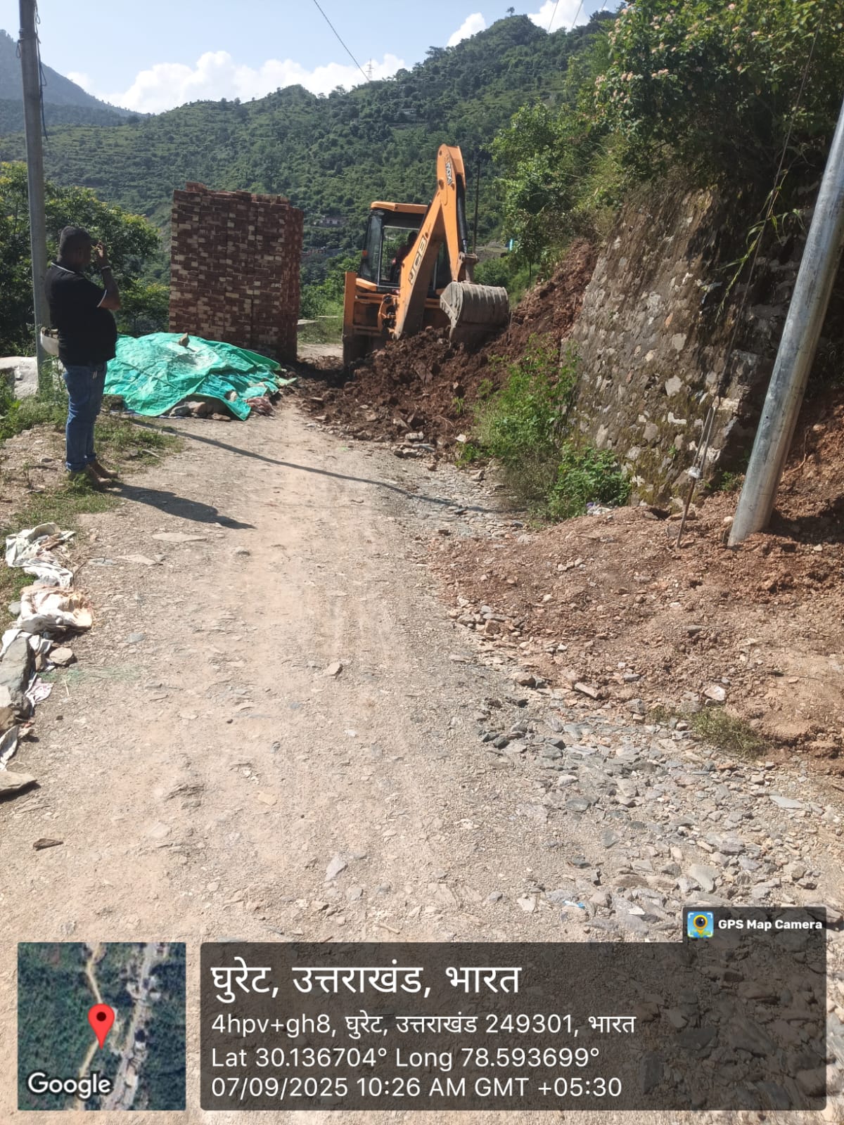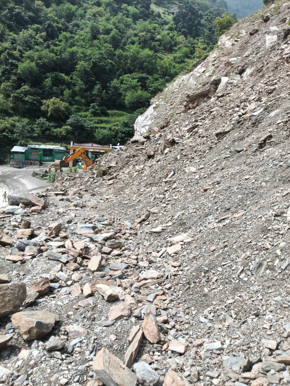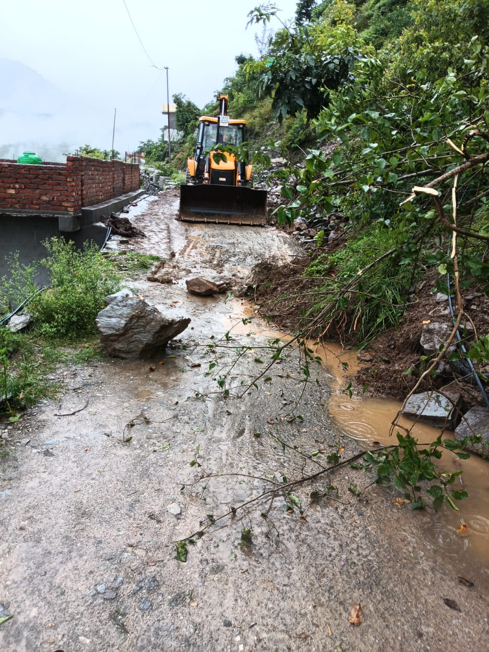 Road is partially open but there is a problem in passing the vehicle on that portion of road so machine is deployed.