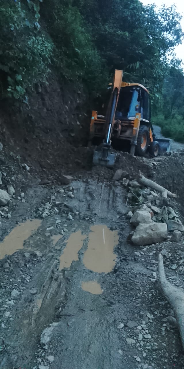 हिल साईड से मलवा आने व दिवार टूटने से मार्ग बन्द है। मार्ग को खोलने हेतु जे0सी0बी0 लगा दी गयी है। |
