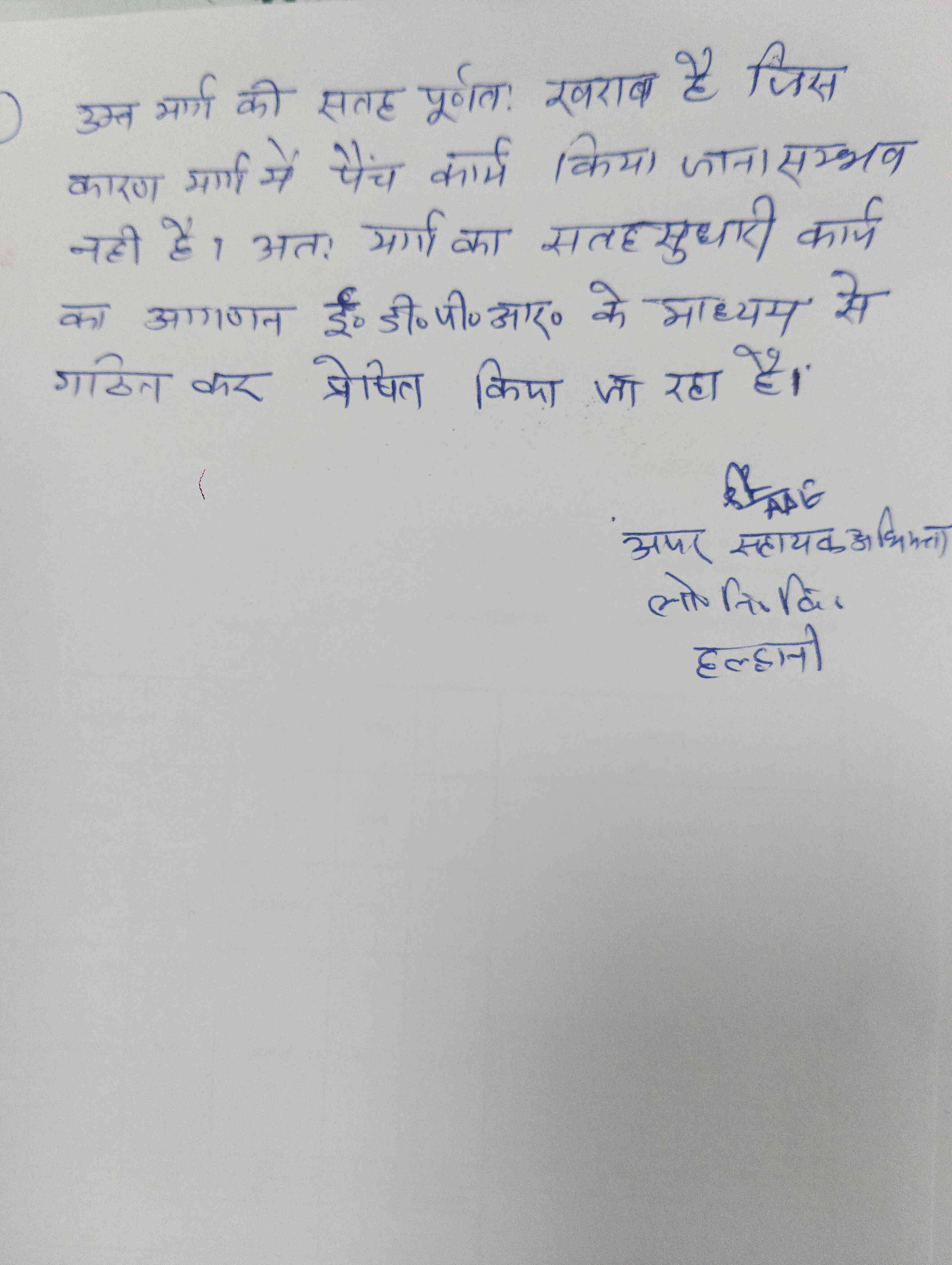 with Comment "Ukt karya ka aagaran EDPR ke madhyam Se preshit Kiya jana hai jiske kram mein shikayat Karta se varta ho chuki hai"