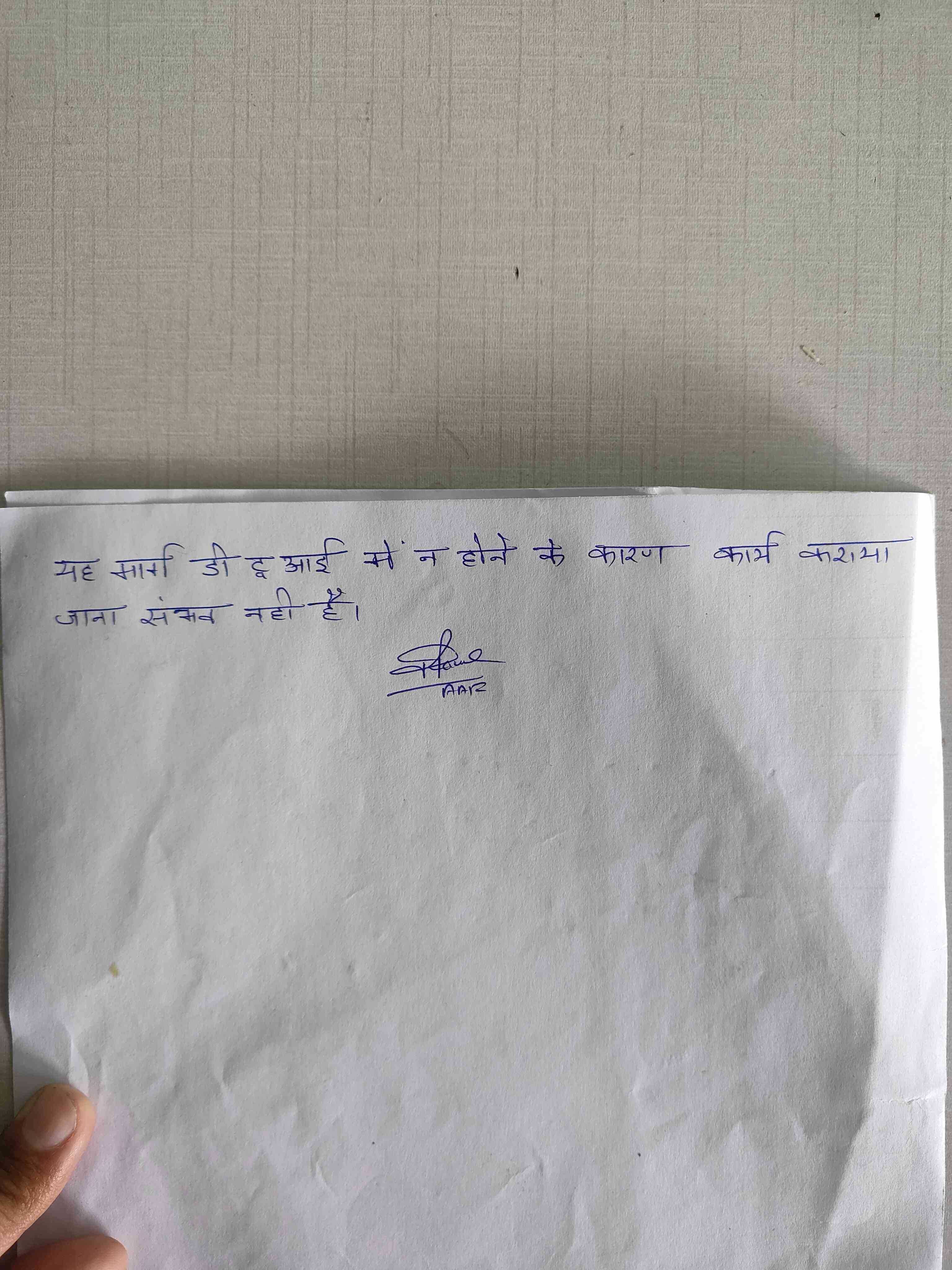 with Comment "यह मार्ग डी टू आई में न होने के कारण कार्य कराया जाना संभव नहीं है"