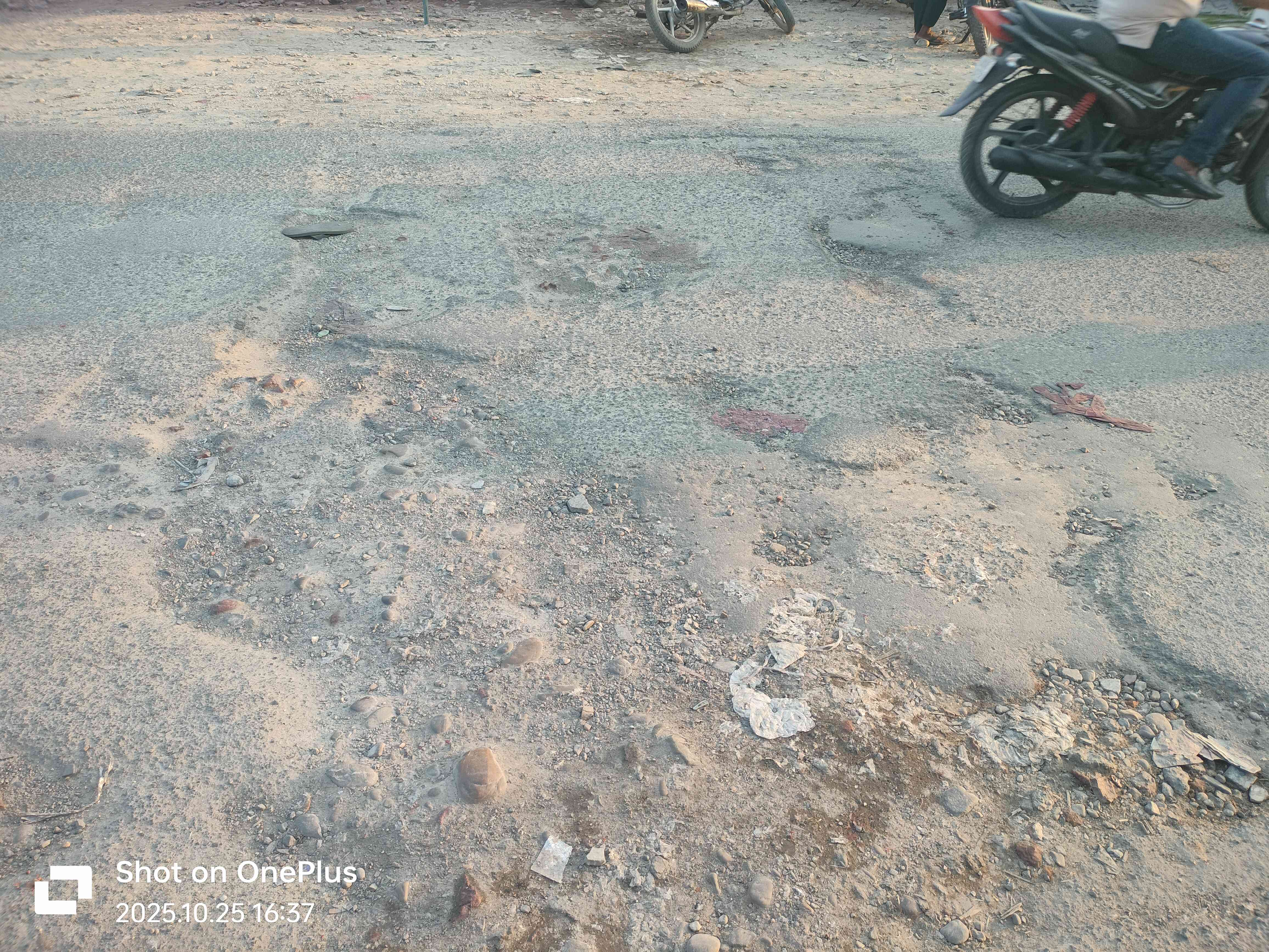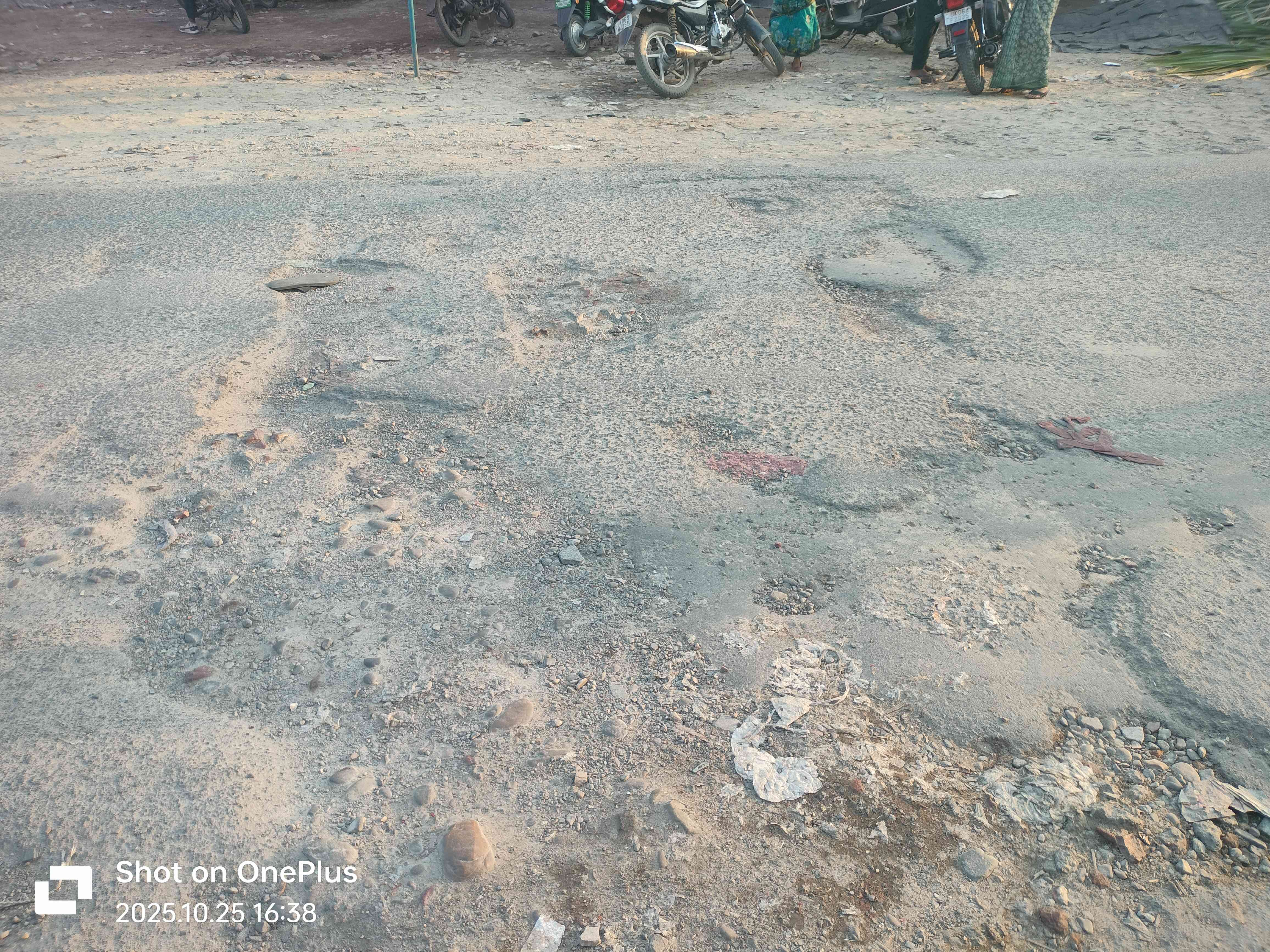The road is broken and Potholes, Kindly Repair it as soon as possible to avoid accidents.