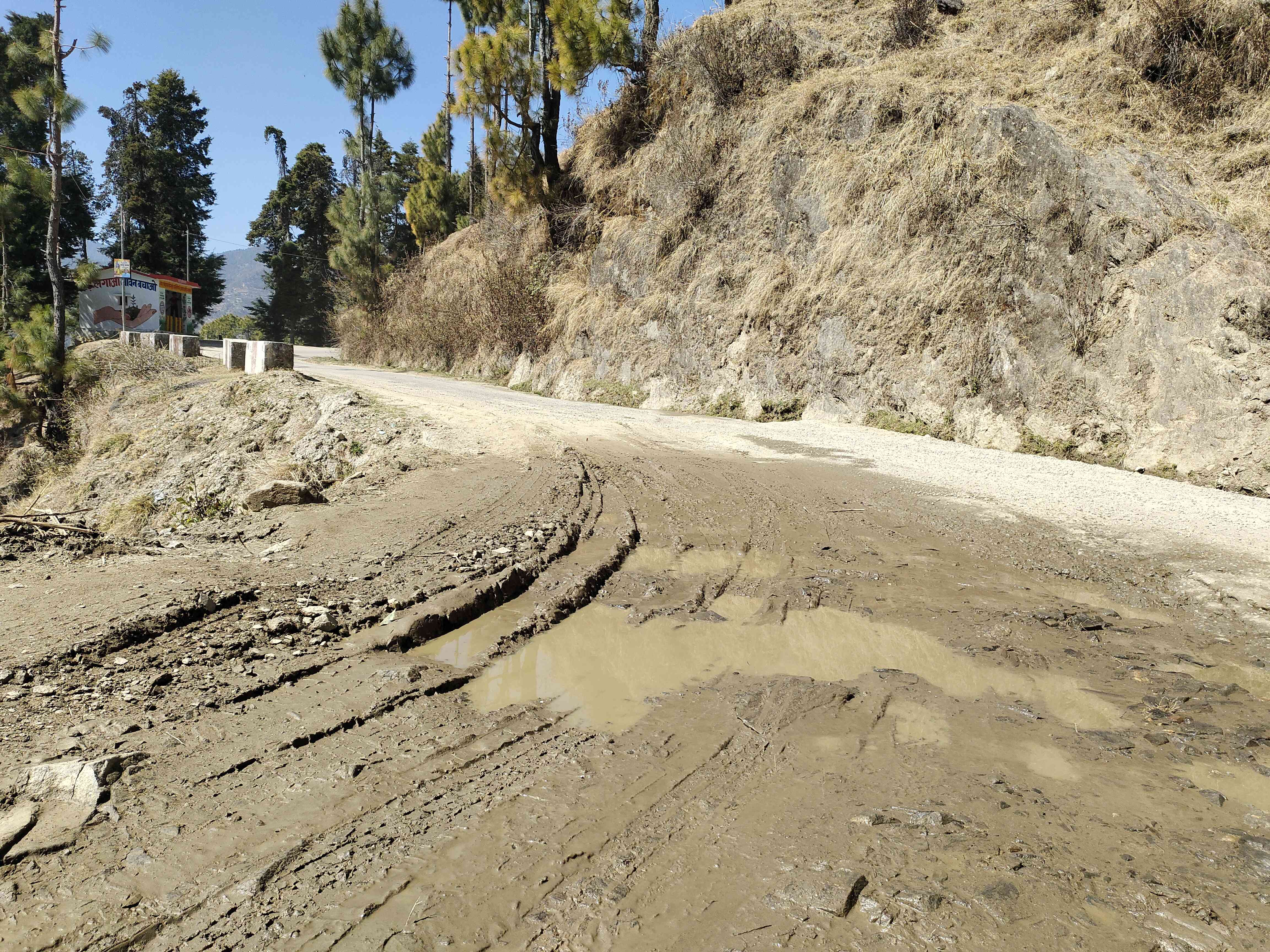 A deep pothole with stagnant water has formed on the road, creating a serious safety hazard. Kindly take urgent action for repair.