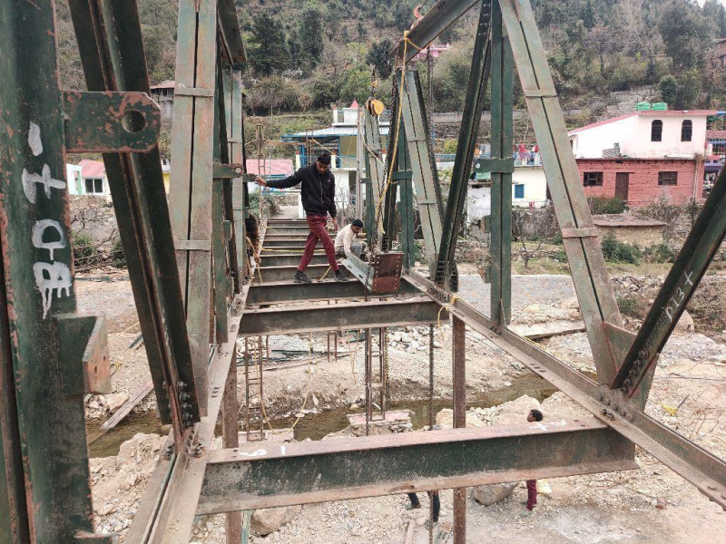 project:जिला योजना वर्ष 2023-24 के अन्तर्गत तल्ला रामगढ़ रातीघाट मोटर मार्ग के कि0मी0 1 है0मी0 4 से 6 में ग्राम पाली एवं नैकाना को जोड़ने हेतु 24 मी0 स्पान स्टील गर्डर पुल स्थापित करने का कार्य।