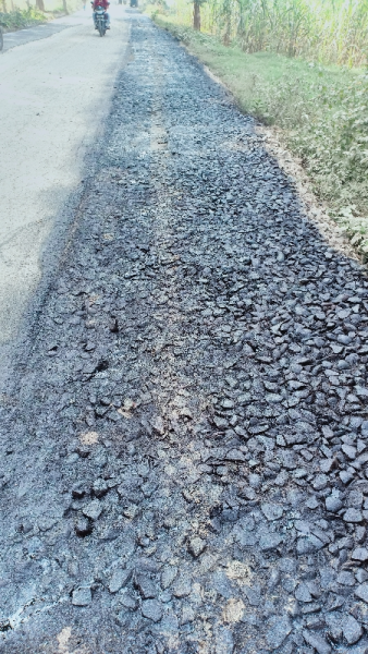 Prime coat work at km 9 in widening portions from Bhogpur Raisi road