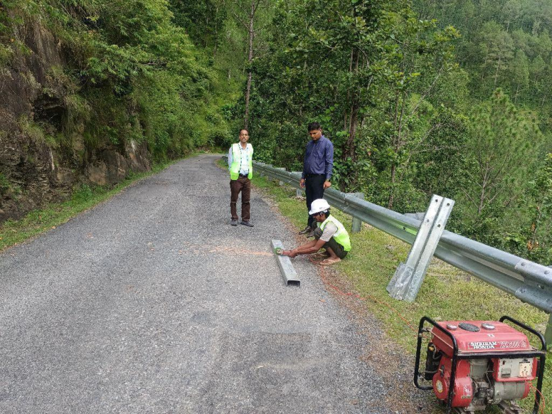 project:सड़क सुरक्षा मद के अन्तर्गत खुटानी-भवाली- धानाचूल-खनस्यूॅ-पतलोट-मीडार-तामली मोटर मार्ग (राज्य मार्ग संख्या-64) के किमी0 84 से 88.00 एवं 90 में दुर्घटना सम्भावित क्षेत्रों पर क्रैश बैरियर द्वारा सुरक्षात्मक कार्य एवं रानीबाग-भीमताल-खुटानी -पंचेश्वर मोटर मार्ग राज्य मार्ग स0-10 के किमी0 01 से 06 अवशेष भाग में क्रैश बैरियर द्वारा सुरक्षात्मक कार्य। District: Nanital