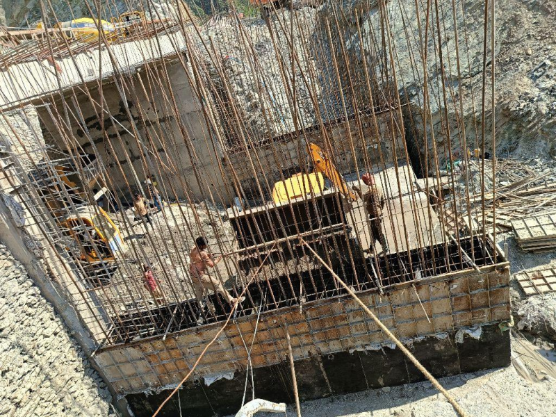 12 m span bridge 2nd lift wall concrete work is in progress for