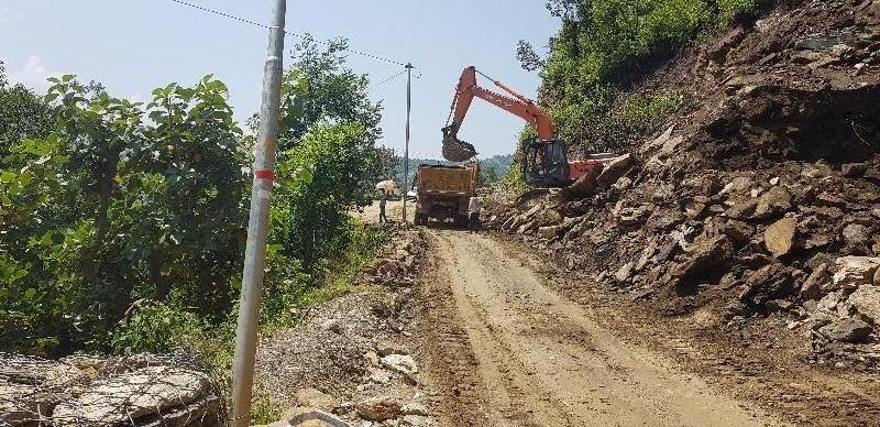 अत्यधिक वर्षा के कारण हिल साइड से आये मलवे का सफाई कार्य प्रगति पर है।