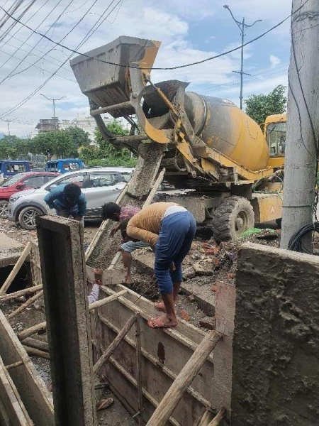 Drainwork in progress under hardshoulder work in km 162 on NH72