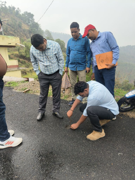 Thickness checking of Champawat munch Tamli Road SH64 by Chief engineer Almora Sir