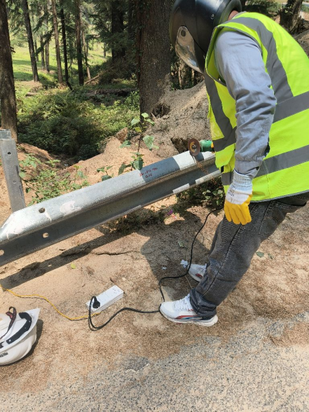 Testing of crush barrier (W Beam) on Champawat munch Tamli Road (SH64)