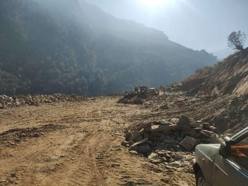 Hill side cutting work for helipad base in progress