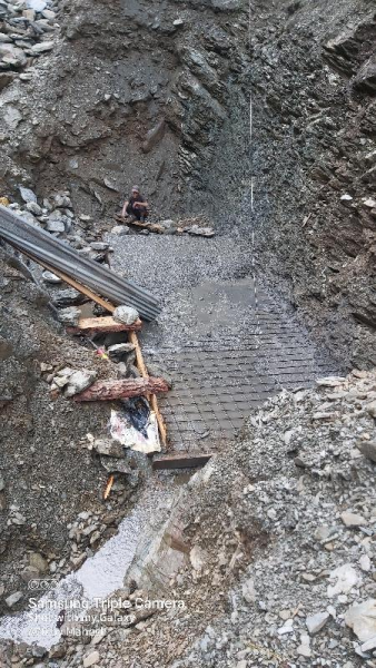 5.00 मी0 स्पान पुलिया के बाँये abutment का राफ्ट कार्य प्रगति पर ।