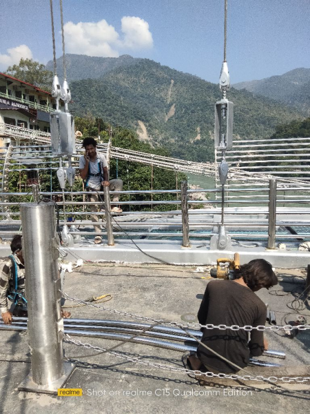 S S railing work in progress at upstream site , 7 pannels left for fixing pipe railing