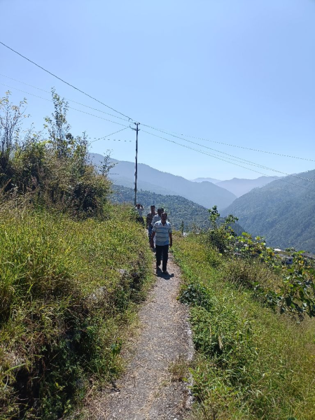 "विनकखाल तीसरियारा मोटर रोड पर संरेखण विवाद सुलझाने हेतु ग्रामीणों के साथ बैठक व निरीक्षण"