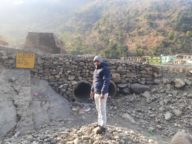 लालपुल भुतसी मोटर मार्ग km 2 में hume pipe डालकर वैकल्पिक पहुँच मार्ग