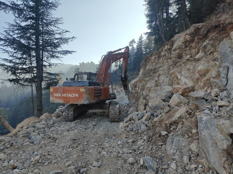 Hill side cutting in progress
